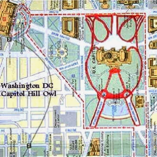 Objetivos de la geometría sagrada. El objetivo principal del uso de la geometría sagrada en edificios o monumentos religiosos y de poder, es evocar e invocar las fuerzas naturales y espirituales, espíritus y divinidades, presentes en la creación; un segundo objetivo o uso sería como símbolo o acto "profético", para transmitir un deseo, mensaje, proyecto o destino a generaciones futuras o para alcanzar un fin, sea político y/o religioso; el tercero, que el edificio, monumento o templo diseñado según los parámetros de la geometría sagrada, funcione como una puerta o portal que comunique al mundo espiritual con el material y viceversa, o comunique con fuerzas espirituales o divinidades específicas; y el cuarto, sería como un medio de comunicación de un mensaje. Estos cuatro principios siguen siendo utilizados en la actualidad y son la finalidad del uso de la geométria sagrada en nuestros tiempos. Por ejemplo en el Capitolio de los Estados Unidos, sobre todo con las nuevas técnicas satélitales se puede observar a un buho sentado en una pirámide, está ave se dice está ligada al movimiento masonico de los Iluminati de Baviera, a una deidad tan antigua como Moloc (Babilonia), la diosa Palas Atenea, tambien llamada Minerva, entre otras más. Dicen que cuando Pierre Charles L'Efant el arquitecto que diseño la ciudad en el año de 1791 bajo principios propios de la masoneria a la cual perteneció, vio la zona donde se erigiria la ciudad hoy capital estadounidense (Whashington) Expresó: "Es un pedestal A la espera de un monumento" No es dificil entender que el pedestal era el terreno en el cual se erigiria la ciudad y el monumento finalmente sería la ciudad misma. El simbolismo de la mencionada urbe es algo que impresiona (en otro articulo de este blog hablaré extensamente sobre el tema) piramides, estrellas, triangulos, símbolos de diversos significados y el uso de la numerologia resaltan en el trazado original del cosmopolita sitio, por ejemplo: La distancia que separa al capitolio (sede del parlamento de EE.UU), la Casa Blanca (lugar de residencia de los presidentes electos, durante el periodo presidencial que les corresponde) y el Memorial Jefferson (monumento construido en memoria del mandatario Tomás Jefferson, tercer prsidente en la historia de los Estados Unidos). Si se observan los planos o se trazan lineas entre cada edificación, notaremos que: Los tres edificios forman un triangulo isósceles y ademas veremos que entre la fuente de la Casa Blanca y el Memorial Jefferson hay exctamente 1776 metros de separación (1776 es el año de la fundación de los Estados Unidos y también año en que Adan Weishaupt crea la secta de los Iluminati (Weishaupt dio origen tambien a la ordén de los "Perfectibilistas".Retomando el punto de la ciudad capital del estado homónimo (cuando dos personas, cosas, lugares comparten el mismo nombre se entiende son homónimas y Whashington es tanto un estado como una ciudad). El ya mencionado Memorial Jefferson al unirse o alinearse con el Obelisco en honor a George Whashington y el Memorial Lincoln (ubicado en uno de los extremos horizontales del National Mall) forman un perfecto triangulo isósceles (proximamente escribiré acerca de la fundación y simbolismo de la capital norteamericana, de la misma forma que he hecho y aparece publicado en este blog sobre las ciudades de Brasilia - Brasil y la Plata - Argentina). Para concluir, por ahora, lo referente a la ciudad que debe su nombre a George Whashington, el primer presidente de los EE.UU y quien antes fuese el comandante en jefe del "Ejercito Continental Revolucionario" durante la "Guerra de Independencia" tenemos que el famoso obelisco erigido en honor al mandatario, tiene en su piso tres círculos de diferentes dimensiones claramente visibles cuando se les observa desde arriba; tambien resalta la figura de la "vejiga de pez", la llamada con más frecuencia "vesica piscis" símbolo tan común en construcciones de origen templario y masónico y de gran importancia en la geometría sagrada, observen la "vesica piscis" ubicada en el Oblisco a George Whashington, publicada en: cubamason.forosactivos.net)